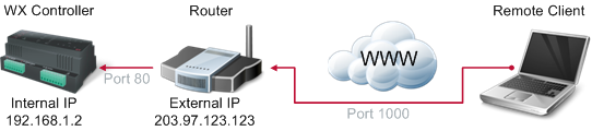 To enable access to the controller over the internet, NAT or Network Address Translation must be set up on the router