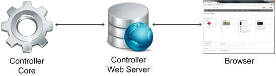 - The web server talks to the controller core to query for events and system status, and to send programming update requests