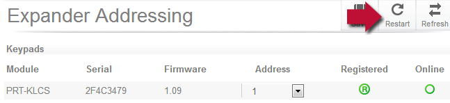 To force a module restart, navigate to Expanders | Expander Addressing and click Restart