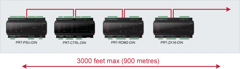 The total length of the module network should not exceed 3000 feet (900 metres)