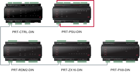 - We recommend using an ICT PRT-PSU-DIN however any clean 12V DC supply is suitable