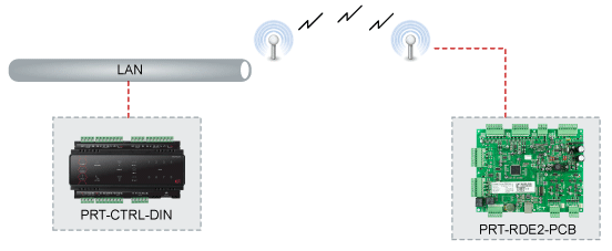 System Architecture - EthernetThe Protege WX system can also be expanded via Ethernet where a modified version of the ICT RS-485 protocol is encapsulated inside UDP packets and transmitted across an Ethernet network using the PRT-RDE2-PCB Ethernet Expander This mode of communication allows for a maximum latency time of 2 seconds. Although Ethernet is traditionally faster that RS-485, internet routing devices may introduce delays.