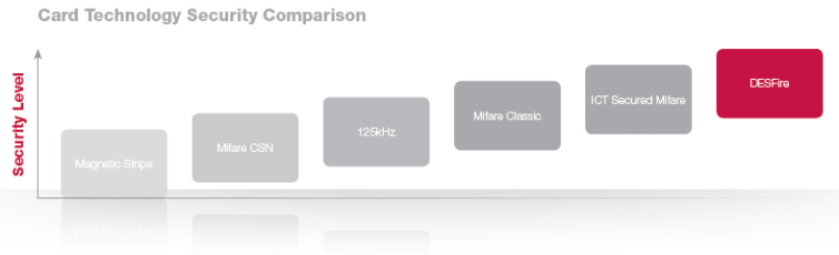 Choosing Card Technology125kHz or 13.56MHz? When it comes to the end user, there is little visible difference between a 125kHz card and a 13.56MHz card - they present a card to a reader and access is either granted or denied. What happens behind the scenes is quite different however. Apart from the frequency that is used to transmit data, there are key differences in security and the card read range.