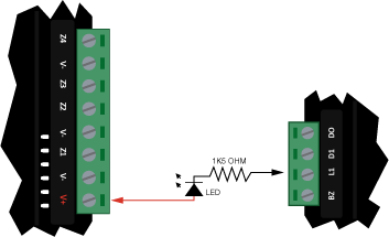 OutputsIf readers are not attached to the reader ports then the Reader 1 L1 and BZ, and the Reader 2 L1 and BZ outputs can be used as general purpose outputs. These can be controlled by assigning the RDxxxGreen R1, RDxxx Beeper R1, RDxxxGreen R2 and RDxxx Beeper R2 outputs of whichever reader module has been configured as the onboard reader module. These are open drain outputs which switch to the V- reference. This is only relevant to the PRT-WX-DIN controller. Warning: The reader outputs can switch to a maximum capacity of 50mA. Exceeding this amount will damage the output. |