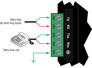 Telephone DialerThe PRT-WX-DIN provides the ability to communicate alarms and upload information to remote systems using the onboard 2400bps modem. If using Contact ID to provide offsite alarm monitoring,you can connect the telephone line directly to the Controller using the onboard telephone connection terminals. Phone lines are notorious for creating a path for lightning strikes. If a phone line is connected, you must always connect the earth terminal to a frame ground. |