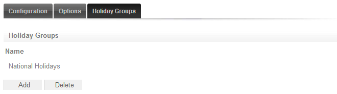 - Click Add and select the group or groups of holidays that you wish to apply to this schedule.