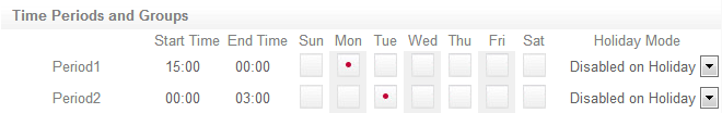 - Where a schedule is required to operate overnight, enter a start time, but leave the end time as 00:00