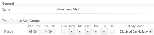 - Check Monday to Friday in Period 1 and set the holiday mode to Disabled On Holiday