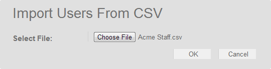 - Browse to and select the CSV File you wish to import the users from, then click OK