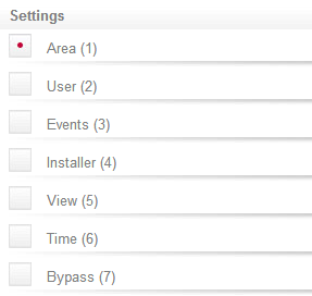- Area (1): When enabled, the menu group will allow the user to access the Area menu.