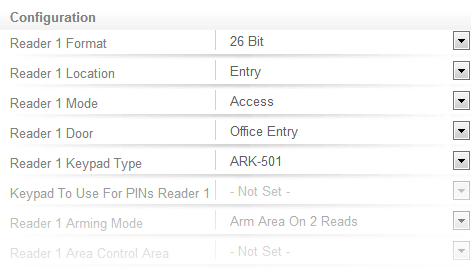 Select the Reader One tab. The Configuration options here define the behavior of the Reader Port 1. By default, readers are configured for:
