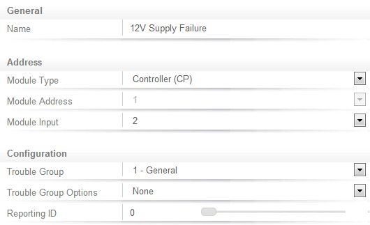 Trouble Input ProgrammingTrouble Inputs are programmed much like a physical input with a name and module address: