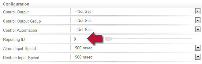 Overriding CID MappingTo override the settings of the report maps, individual Contact ID codes can be programmed for each input: