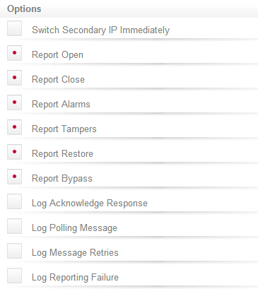 - Open and Close: Reports all area arming and disarming signals. This is usually only enabled for commercial premises.