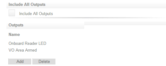 Before we set the output to indicate the area's status, we need to put the onboard reader LED output and the virtual output into an output group.