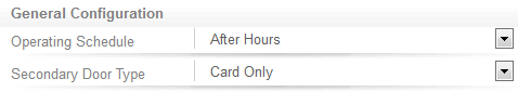 - The Secondary Door Type should be set to Card. The Secondary Door Type defines the reader mode when the schedule is not valid.