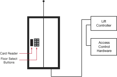 - Basic elevator control is commonly achieved by installing a card reader in each elevator car