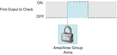 The Follow Pulse On function arms the controlled area/area group only when the checked output transitions from an off to an on state