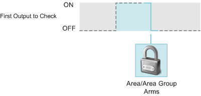 The Follow Pulse Off function arms the controlled area/area group only when the checked output transitions from an on to an off state
