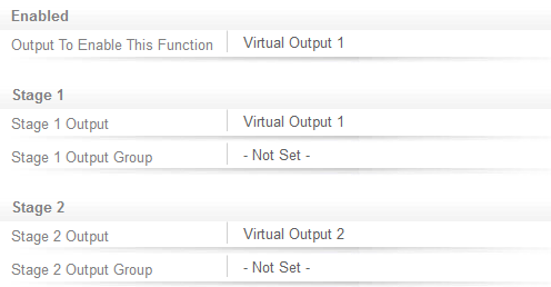 - When the function is activated, there is a two second delay between Virtual Output 1 and Virtual Output 2.