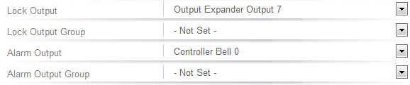 - Lock Output/Output Group: You can assign an output or output group that controls the physical electric lock for the door.