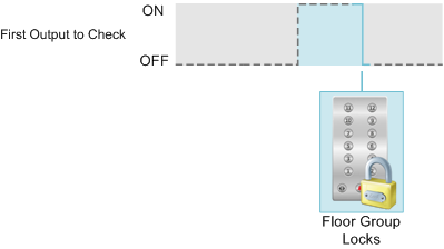 The Inverted Follow Pulse Off Output action locks the controlled floors only when the checked output has transitioned from an on to an off state. When the checked output turns on, the state of the floor group's state does not change as the Follow Pulse Off function is only evaluated at the OFF edge. |