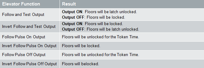 The table below demonstrates the resulting floor group state when the Emulate Unlock Menu mode is selected and used in conjunction with any of the 6 door function modes.