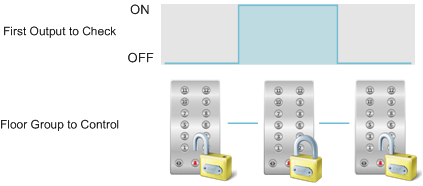 In between state changes, the controlled floor group's state is continually tested at approximately 30 second intervals. If the controlled door state has been changed by an external operation, the programmable function restores it. |