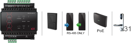 - One hardwired door can be configured via the RS-485 reader port (ENTRY/EXIT).