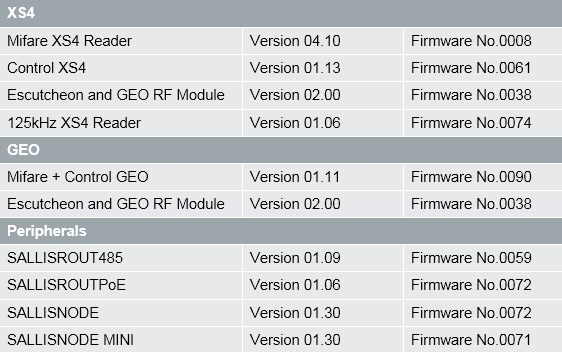 SALLIS integration has been tested with the following SALLIS firmware editions: