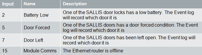For reporting purposes, some of the the onboard reader trouble inputs are linked to the SALLIS door locks.